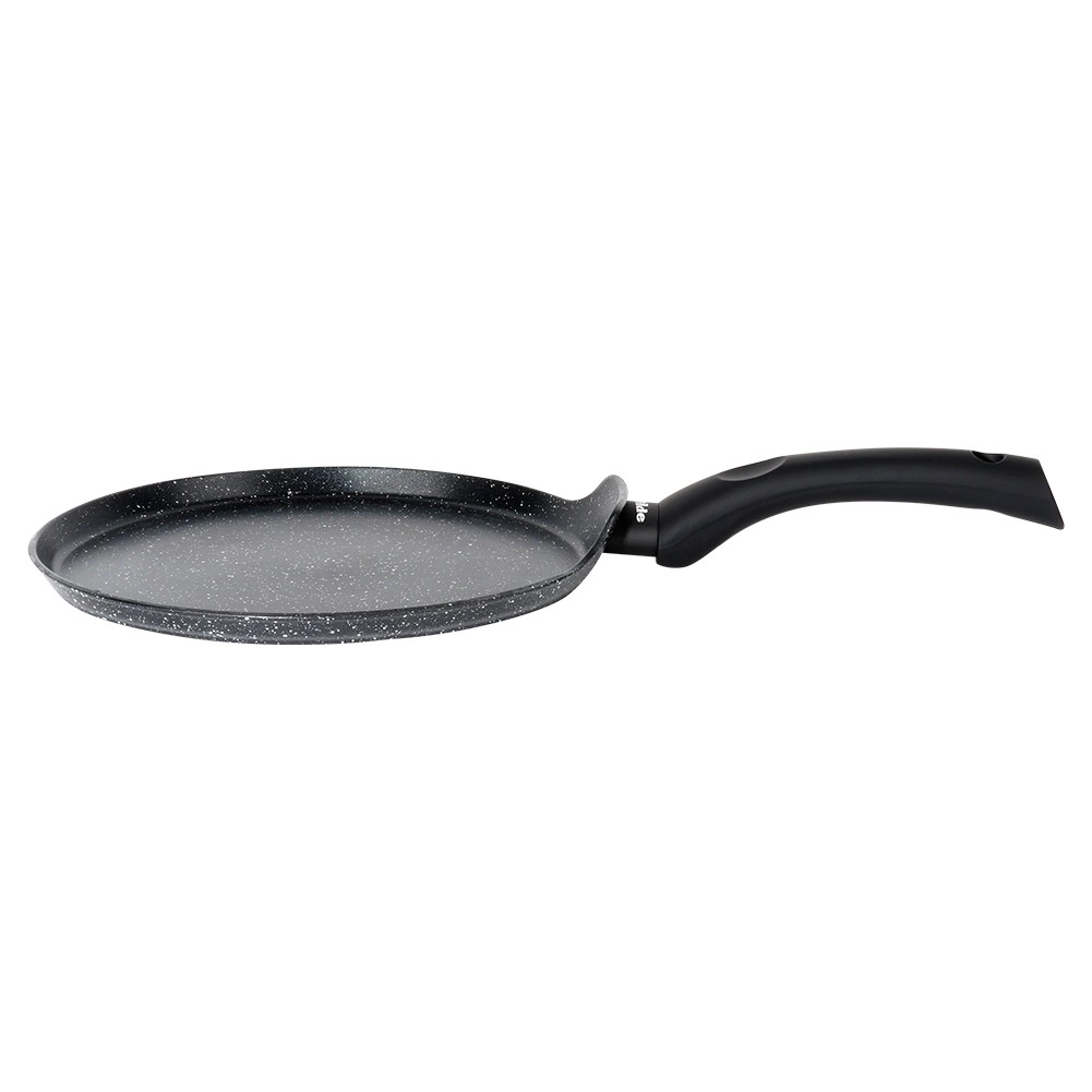 Lekka i wytrzymała granitowa patelnia do naleśników o średnicy 24 cm do perfekcyjnie cienkich naleśników, placuszków i omletów. Dzięki nieprzywierającej powłoce, równomiernemu rozprowadzaniu ciepła oraz miękkiemu uchwytowi soft-touch przygotujesz zdrowe potrawy przy minimalnej ilości oleju. Odpowiednia na wszystkie typy kuchenek, w tym indukcję, a czyszczenie jest łatwe, również w zmywarce.