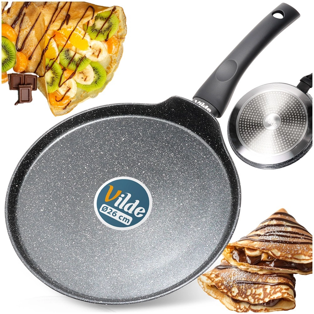Specjalna warstwa granitowa zapobiega przypalaniu i umożliwia smażenie z minimalną ilością oleju. Naleśniki łatwo zsuwają się z patelni na talerz.
