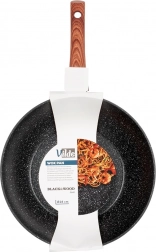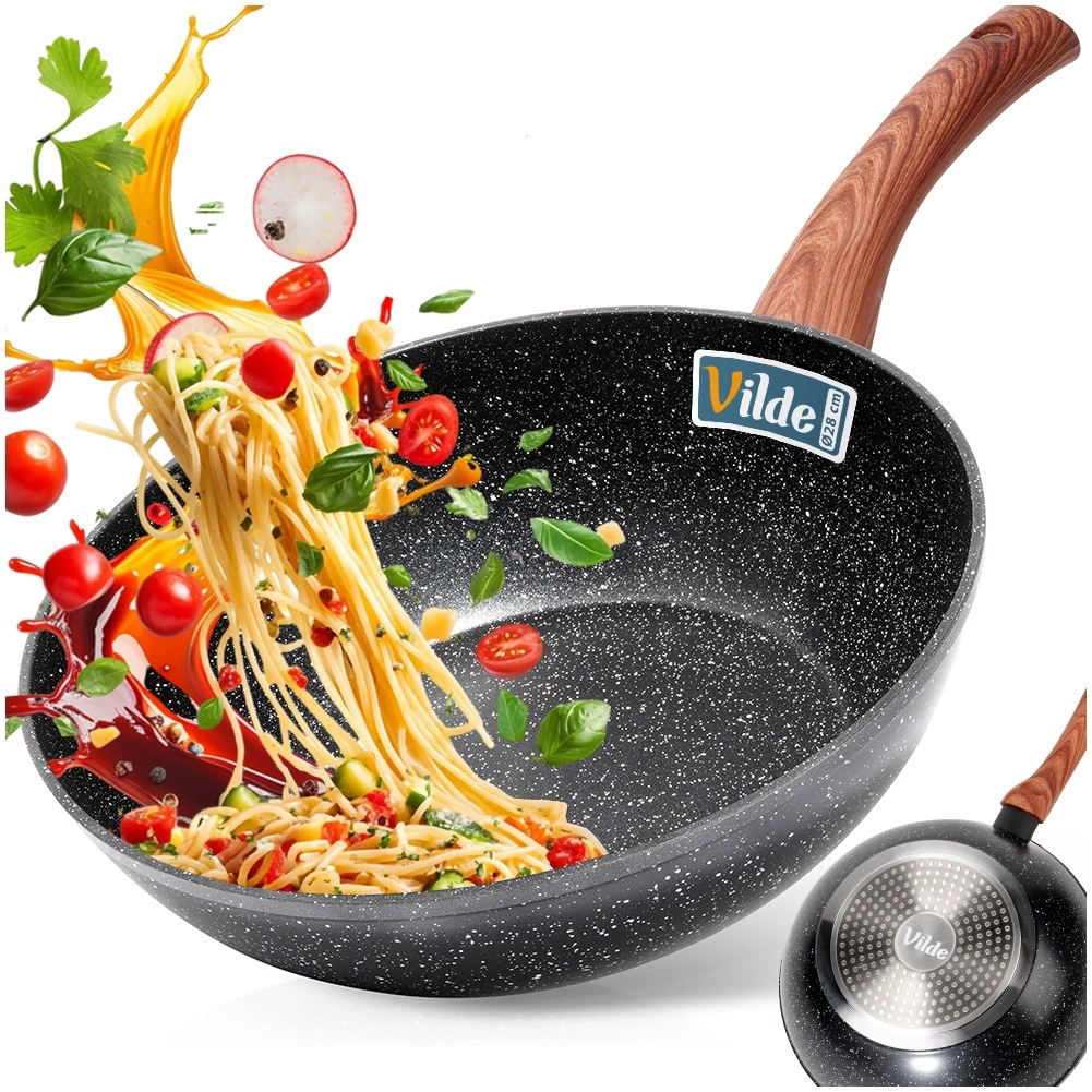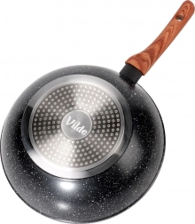 Odkryj praktyczny granitowy wok w eleganckim połączeniu czerni i drewna z kolekcji VILDE Black&Wood. Głębokie, zaokrąglone korpus umożliwia wygodne stir-fry, mieszanie i podrzucanie składników nad płomieniem, a nieprzywierająca granitowa powłoka zapewnia łatwe uwalnianie potraw i szybkie porządki.