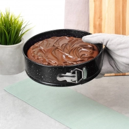 Solidna stal węglowa wytrzymuje temperatury do 230 °C i równomiernie rozprowadza ciepło, dzięki czemu Twój tort lub sernik będzie idealnie upieczony. Materiał nie pochłania zapachów ani płynów i nadaje się do piekarników gazowych oraz elektrycznych.