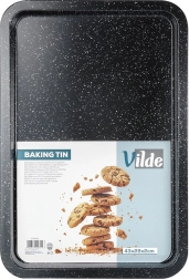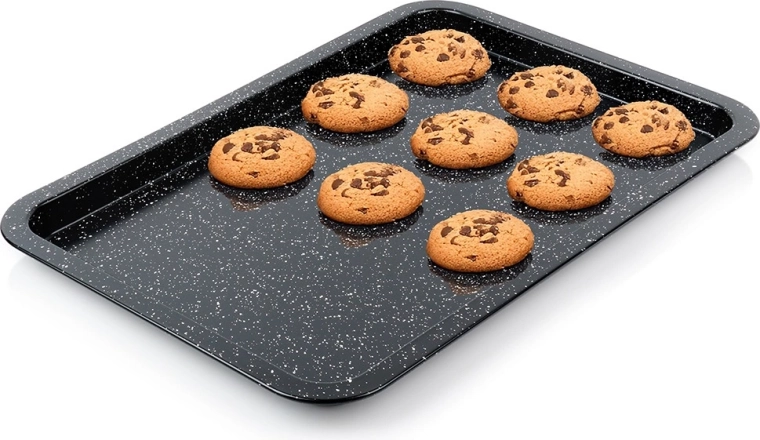 Wytrzymała blacha z wysokiej jakości stali węglowej z granitową powłoką to świetny wybór do pieczenia dań słodkich i słonych. Nieprzywierająca powierzchnia minimalizuje potrzebę użycia tłuszczu i zapewnia łatwe wyjmowanie potraw oraz proste czyszczenie. Materiał jest odporny na temperatury do 230 °C i nadaje się do piekarników gazowych oraz elektrycznych.
