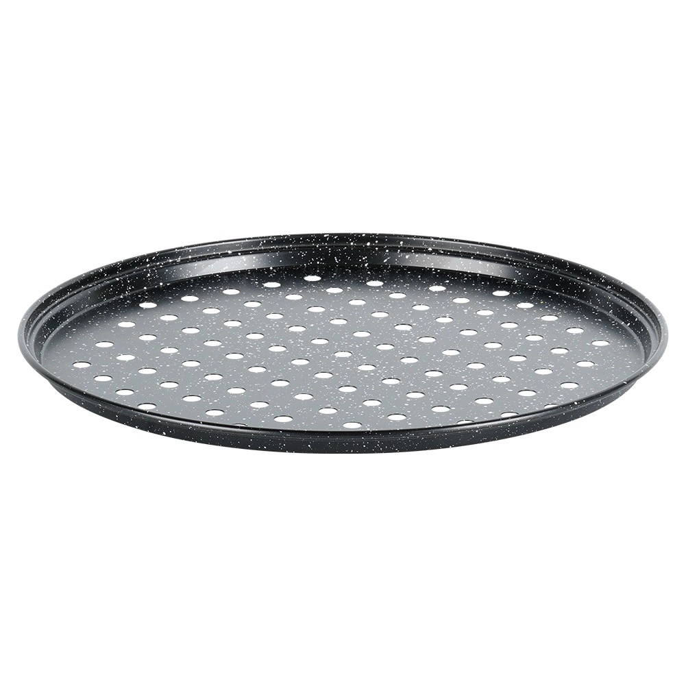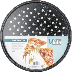Okrągła forma do pizzy o średnicy 28 cm z perforowanym dnem dla chrupiącego ciasta, wykonana z stali węglowej z granitową powłoką nieprzywierającą. Odporna na temperatury do 230 °C, ma wyższy rant dla łatwiejszej manipulacji i pięknego kształtu pizzy. Odpowiednia do pieców gazowych i elektrycznych.