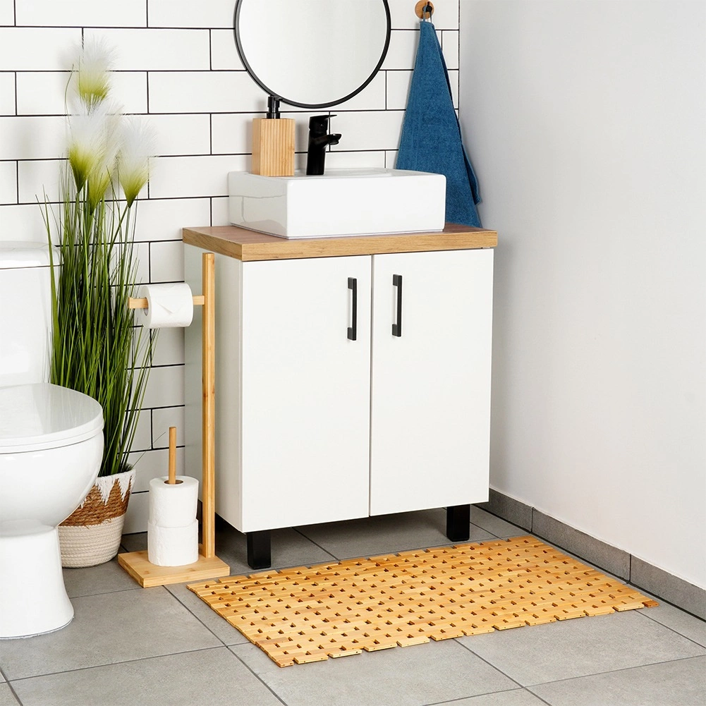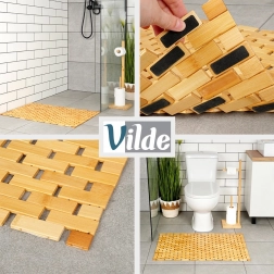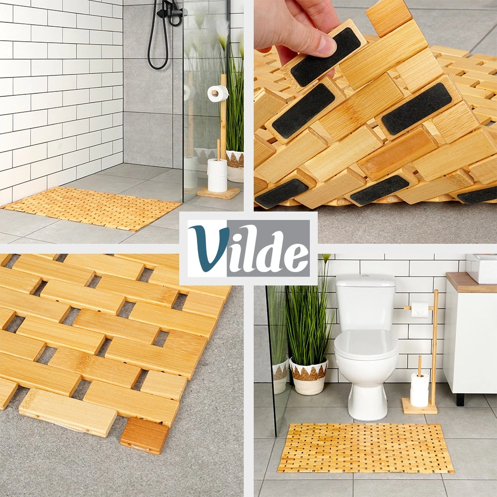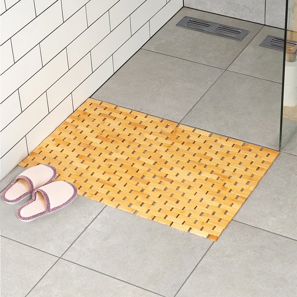 Ta stylowa bambusowa mata do łazienki łączy naturalny wygląd z praktycznymi właściwościami. Lamelki bambusowe z wentylowanymi szczelinami sprzyjają szybkiemu odpływowi wody i schnięciu, dzięki czemu powierzchnia pozostaje higieniczna i przyjemna w dotyku. Ponadczasowy design łatwo wpasuje się zarówno w nowoczesną, jak i klasyczną łazienkę.