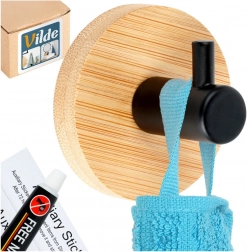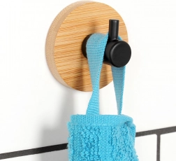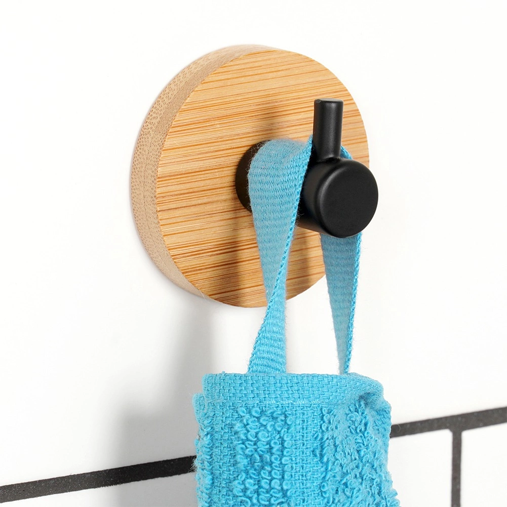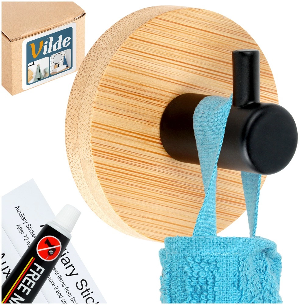 Elegancki haczyk z okrągłą bambusową podkładką i matowo czarnym metalowym trzpieniem pasuje do nowoczesnych i naturalnych wnętrz. Zapewnia praktyczne miejsce do zawieszenia ręczników, ubrań lub toreb bez konieczności wiercenia w ścianie. Dzięki wysokiej jakości materiałom jest trwały i długowieczny.
