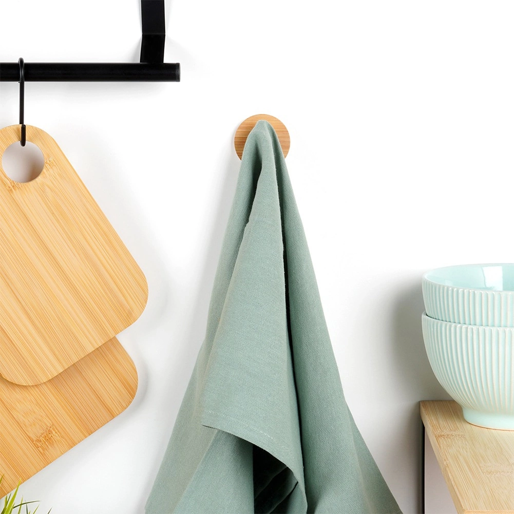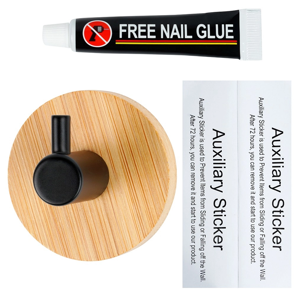 Stylowy haczyk ścienny z bambusową podstawą i czarnym metalowym trzpieniem do codziennego użytku w łazience, kuchni i przedpokoju. Montaż bez wiercenia za pomocą kleju i samoprzylepnych etykiet zapewnia mocne i trwałe mocowanie. Kompaktowe wymiary 5 × 3,5 cm, nowoczesny design i uniwersalne zastosowanie do ręczników, ściereczek, szlafroków czy akcesoriów.