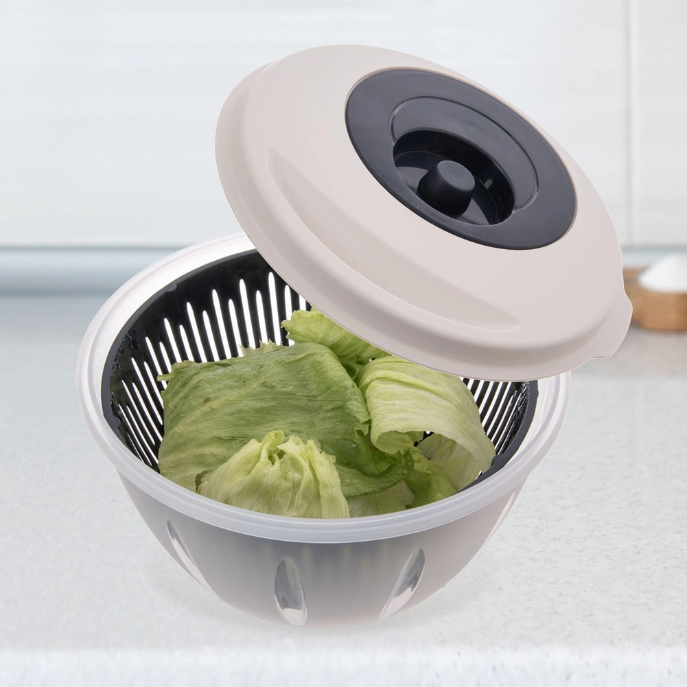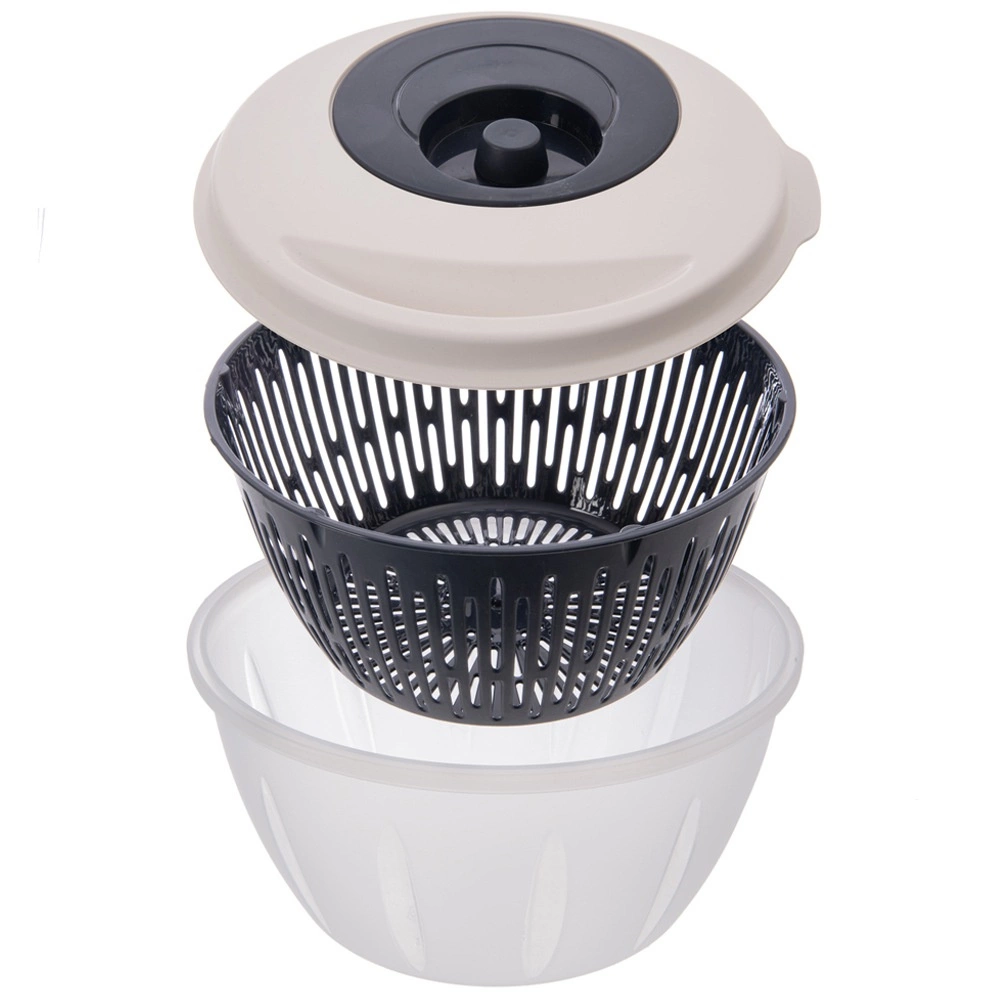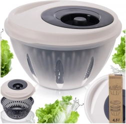 Ręczny mechanizm w pokrywie rozkręca kosz i w mgnieniu oka usuwa nadmiar wody, zapewniając chrupiące liście bez kropelek.