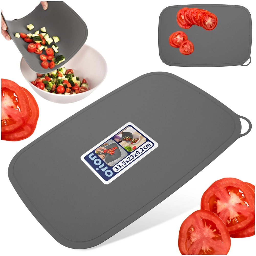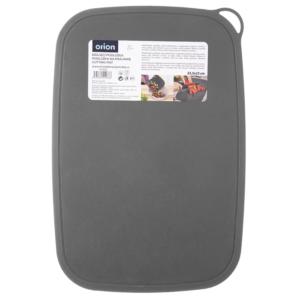 Praktyczna elastyczna mata do krojenia z wysokiej jakości tworzywa w kolorze szarym o wymiarach 33,5 × 23 × 0,1 cm. Dzięki elastycznej konstrukcji łatwo zsypiesz pokrojone składniki bezpośrednio do miski lub garnka, mata jest cicha, lekka i oszczędza ostrza noży. Można myć w zmywarce, jest odporna do +95 °C. ORION – jakość do każdej kuchni.