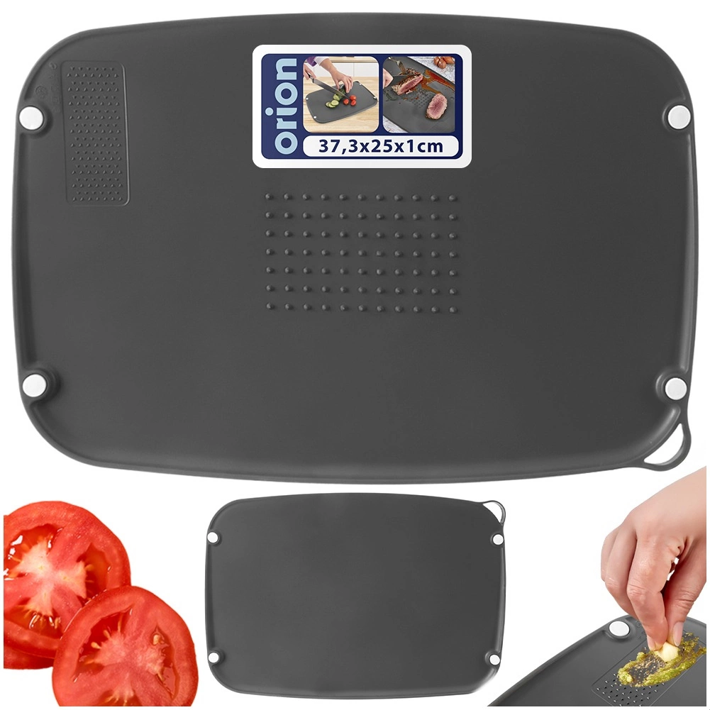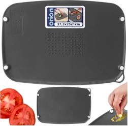 Praktyczna, higieniczna i dwustronna deska do krojenia ELA o wymiarach 37,5 × 25 × 1 cm. Jedna strona jest gładka, druga oferuje kołeczki do stabilizacji żywności oraz drobne wypustki do tarcia (np. czosnku). Specjalne profilowanie zapewnia odprowadzanie soków w jednym kierunku, dzięki czemu blat pozostaje czysty. Wykonana z wysokiej jakości, odpornego plastiku odpowiedniego do zmywarki, odpornego termicznie do +95 °C. Wyposażona w otwór do zawieszenia. Sprawdzona jakość marki ORION.