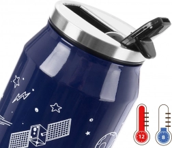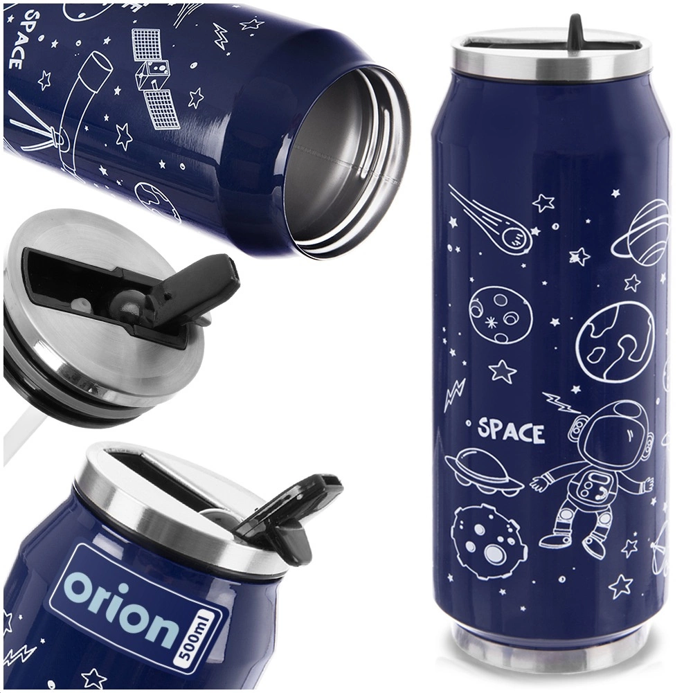 Stylowy termokubek w kształcie puszki o pojemności 500 ml utrzyma Twoje napoje gorące aż do 12 godzin i zimne aż do 8 godzin. Dzięki podwójnej ściance z izolacją próżniową, korpusowi ze stali nierdzewnej oraz szczelnej pokrywce z uchylnym ustnikiem i słomką możesz wygodnie pić bez przechylania kubka. Design z motywem SPACE jest praktyczny i modny w podróży, w samochodzie i w pracy.