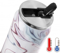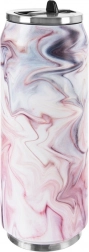 Kształt puszki, pastelowy marmurkowy wzór oraz smukłe wymiary pasują do uchwytów na napoje. Idealny do pracy, szkoły i w podróży.