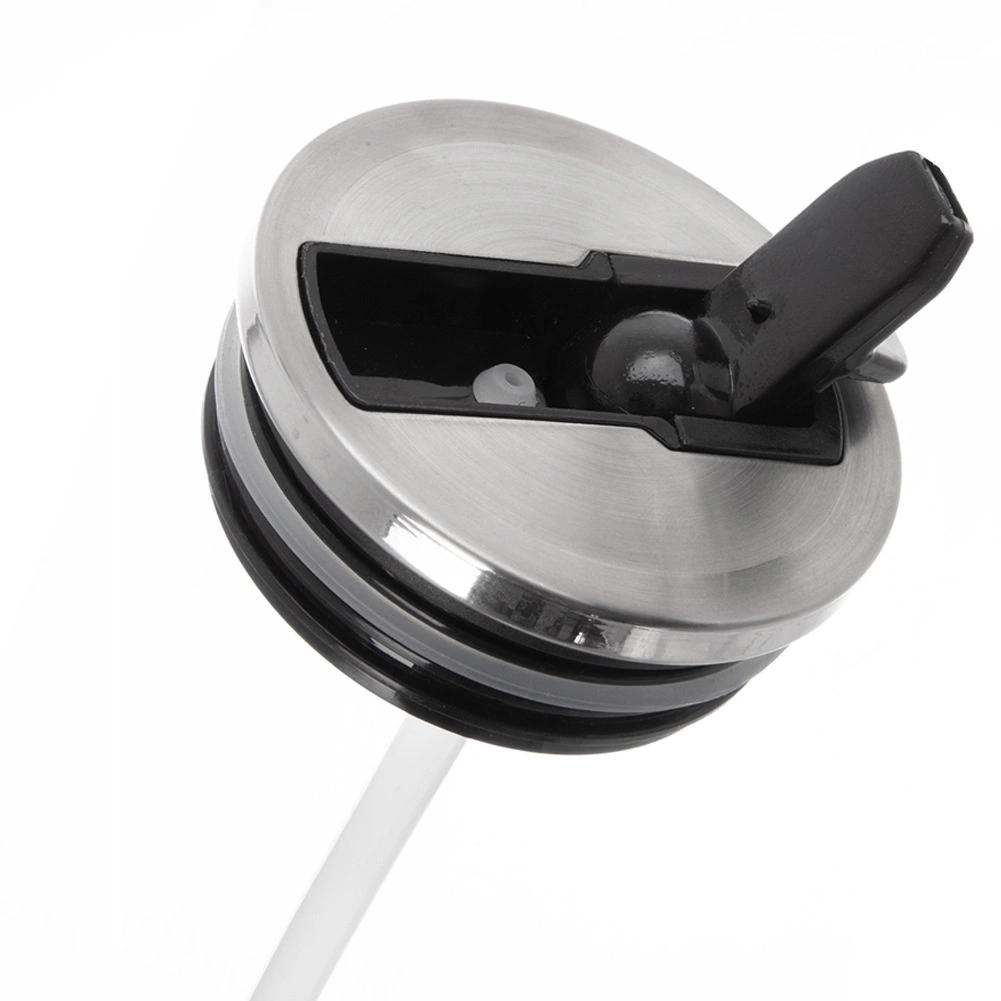 Pij wygodnie bez przechylania kubka. Szczelna pokrywka z odchylanym ustnikiem i wewnętrzną słomką minimalizuje rozlanie i zapewnia komfort w podróży.
