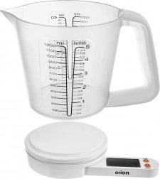 Dzbanek miarki z wysokiej jakości przezroczystego plastiku ma wyraźną skalę od 100 do 1200 ml z podziałką co 100 ml oraz dodatkowy przelicznik na cup (od 1/4 do 5 cup). Eleganckie białe wykończenie pasuje do każdej kuchni, a dzięki kompaktowym wymiarom waga jest łatwa w przechowywaniu. Sprawdzona jakość marki ORION, wykonana zgodnie z europejskimi standardami.