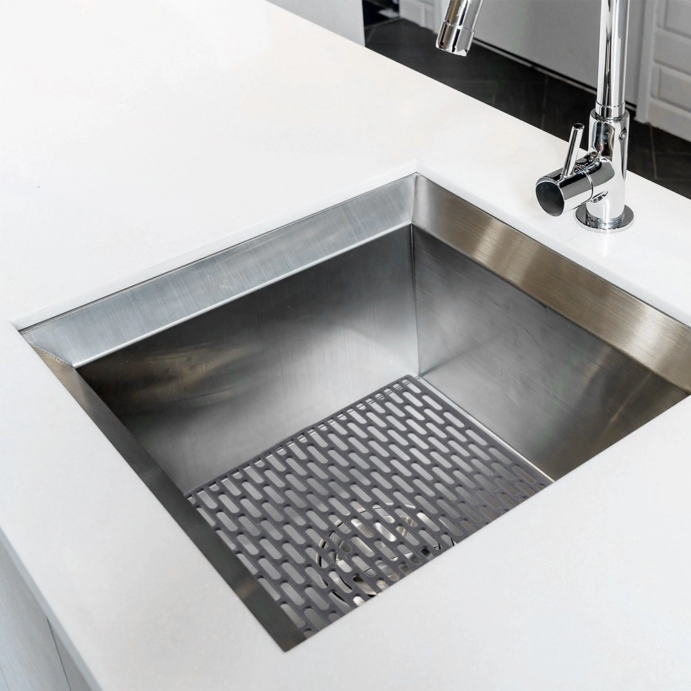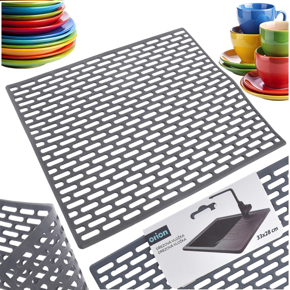 Praktyczna gumowa mata do zlewu o wymiarach 33 × 28 × 0,1 cm skutecznie chroni dno przed zarysowaniami i uderzeniami. Dzięki perforacji zapewnia płynny odpływ wody, jest antypoślizgowa i odporna na wilgoć. Uniwersalny szary kolor pasuje do większości kuchni, a mata nadaje się do różnych typów zlewów.