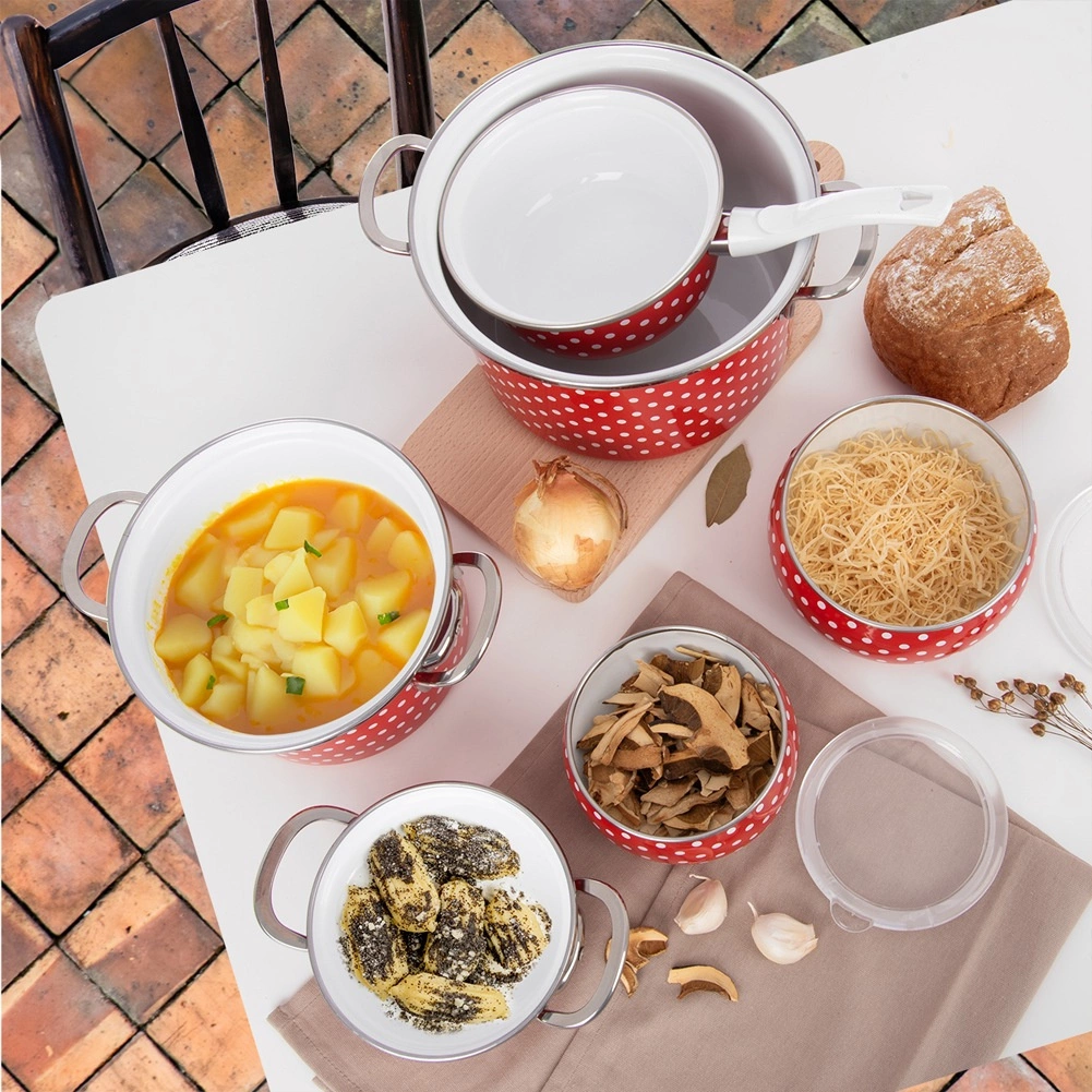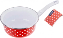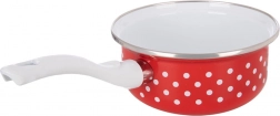 Elegancki rondel w stylu retro z czerwoną emalią i białymi kropkami ozdobi Twoją kuchnię, a jednocześnie zapewni praktyczne zastosowanie na co dzień. Dzięki długiej rączce wygodnie leży w dłoni i ułatwia nalewanie. Emalia jest bezpieczna dla zdrowia i odpowiednia także dla alergików.