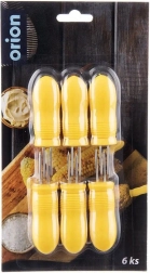 Ciesz się kukurydzą w kolbie bez brudnych rąk i poparzonych palców. Ten zestaw sześciu uchwytów zapewnia pewny chwyt dzięki żółtym, żebrowanym rączkom oraz ostrym dwóm nierdzewnym kolcom w każdym elemencie. Wystarczy wbić je w oba końce kolby, by podawać i jeść z maksymalnym komfortem.