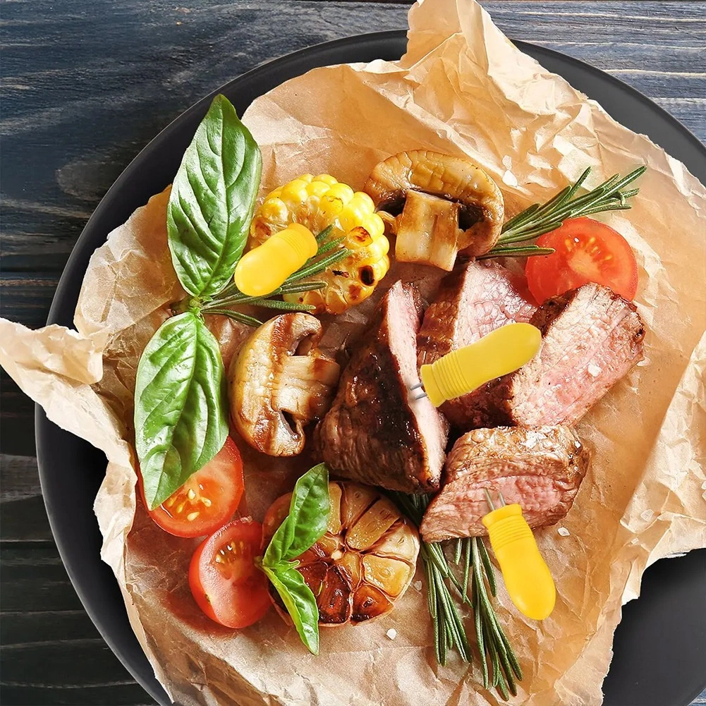 Każdy uchwyt ma dwa ostre kolce ze stali nierdzewnej, które łatwo wbić w końce kolby, co zapewnia stabilną manipulację podczas jedzenia.