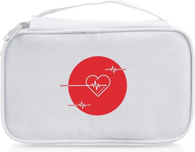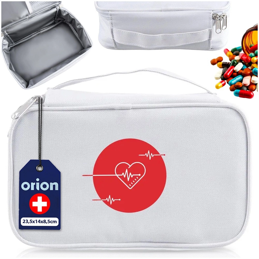 Przechowuj leki, syropy, zastrzyki i drobne akcesoria medyczne bezpiecznie i przejrzyście. Torba termoizolacyjna ORION wykonana jest z mocnego poliestru w kolorze białym z czerwonym motywem serca i EKG. Termoizolacyjna wyściółka pomaga utrzymać stabilną temperaturę i chroni zawartość podczas krótkotrwałego transportu.