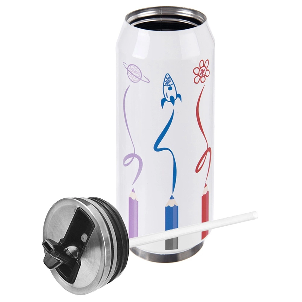 Praktyczny i nowoczesny termokubek o pojemności 500 ml w kultowym kształcie puszki zachwyci świetną izolacją i wygodą użytkowania. Podwójna ścianka z próżnią skutecznie utrzymuje temperaturę napoju, a stal nierdzewna zapewnia trwałość i długą żywotność. Dzięki odchylanemu ustnikowi i wewnętrznej rurce możesz pić bez przechylania kubka.