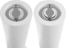 Górne metalowe pokrętło dociskowe umożliwia szybką regulację grubości od drobnej po grubą. Dolna część ze stali nierdzewnej zwiększa trwałość w codziennym użytkowaniu. Elegancka matowa powierzchnia w białym kolorze dopełni zarówno nowoczesne, jak i klasyczne kuchnie i sprawdzi się w domu oraz w profesjonalnych lokalach.