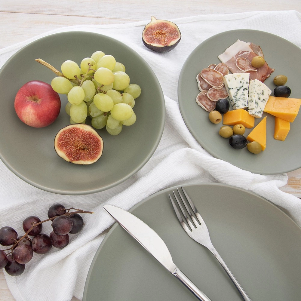 Matowe, oliwkowozielone wykończenie prezentuje się elegancko i łatwo łączy się z innymi kolorami oraz fakturami podczas serwowania.