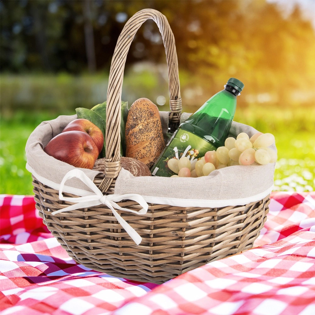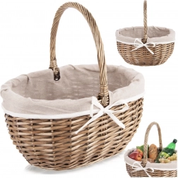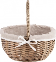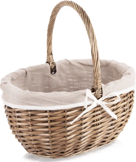 Elegancki wiklinowy kosz piknikowy z praktycznym uchwytem i wyjmowaną materiałową wyściółką oferuje solidne ręczne plecenie z naturalnej wikliny, uniwersalne zastosowanie oraz łatwą pielęgnację. Idealny na piknik, zakupy, przechowywanie, a po wyjęciu wyściółki także jako kosz na grzyby.