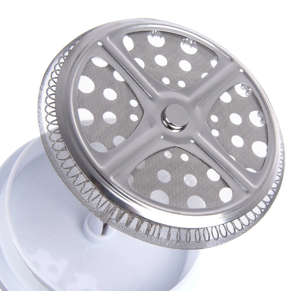 Zintegrowane drobne sitko z tłokiem niezawodnie oddziela fusy kawowe i liście herbaty, dzięki czemu delektujesz się pełnym smakiem bez zanieczyszczeń.