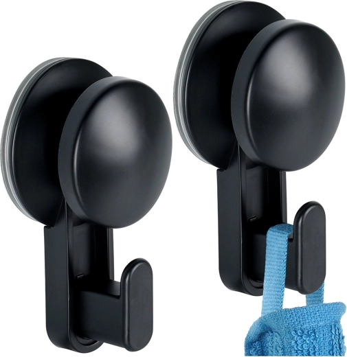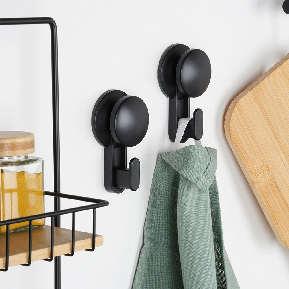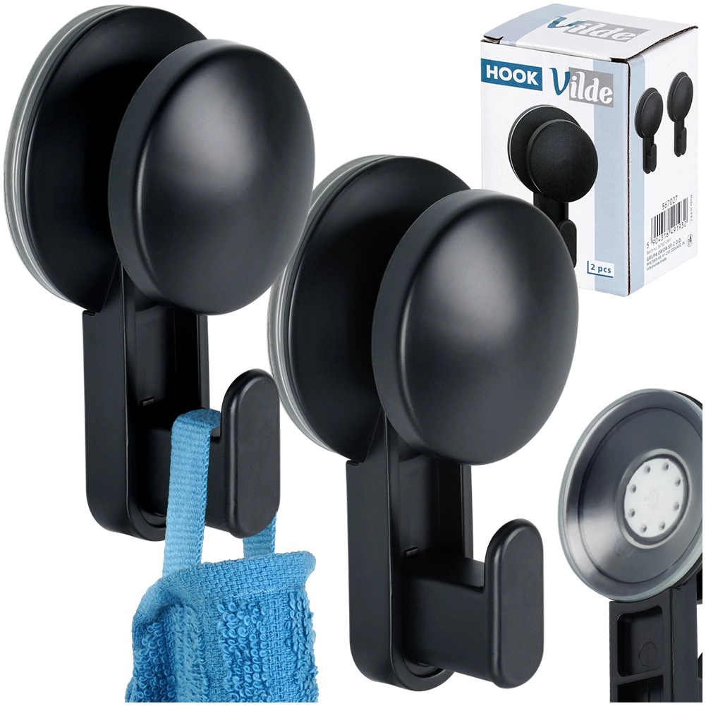Odkryj szybkie i czyste rozwiązanie organizacji domu. Haczyki z przyssawką w eleganckiej czerni solidnie utrzymają ręczniki, ściereczki, myjki, fartuchy, a także lżejsze ubrania – i to bez ani jednego wiercenia. Dzięki szerokiej przyssawce o średnicy 5,5 cm świetnie trzymają się na gładkich, nieporowatych powierzchniach.