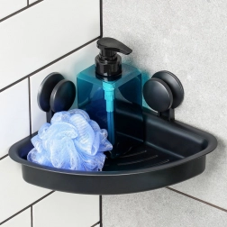 Praktyczna narożna półka prysznicowa z montażem na przyssawki zapewnia stabilną przestrzeń do przechowywania bez wiercenia. W matowym czarnym wykończeniu, z otworami odprowadzającymi wodę dla szybkiego schnięcia i łatwego czyszczenia. Idealna na żele pod prysznic, szampony, mydło i gąbki na gładkich powierzchniach, takich jak płytki czy szkło.