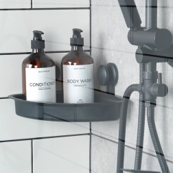 - Wiele zastosowań – na mydło, szampon, żel, gąbki lub szczotki; możliwość zawieszenia drobnych akcesoriów.