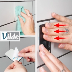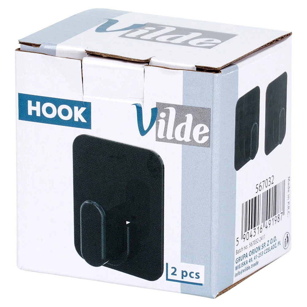 Montaż jest szybki: wystarczy oczyścić gładką powierzchnię, zdjąć folię ochronną i docisnąć. Haczyki sprawdzą się w kuchni, łazience i przedpokoju – na ręczniki, gąbki, ściereczki, rękawice czy lżejszą odzież. Oryginalny produkt VILDE, wykonany zgodnie z europejskimi standardami.