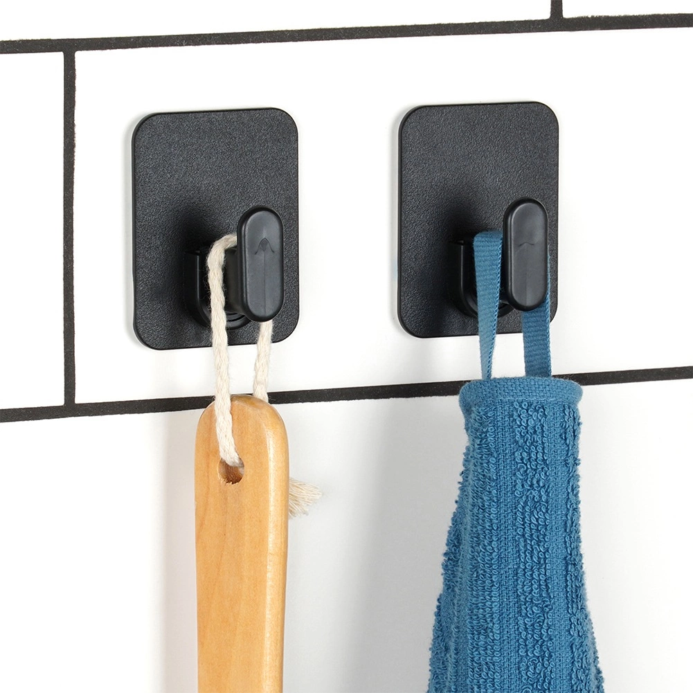 Nowoczesne czarne haczyki z prostokątną podstawą pasują do każdego wnętrza i oszczędzają miejsce w łazience oraz kuchni.