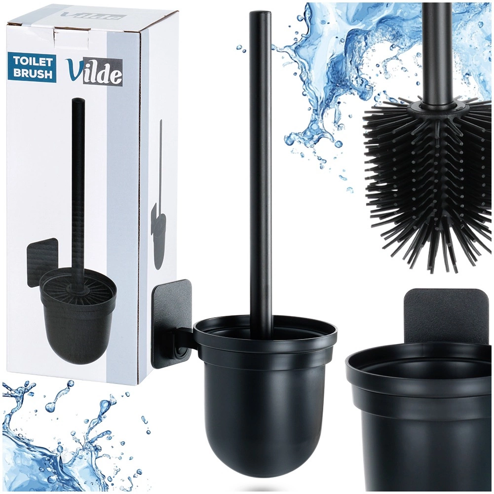 Praktyczna ścienna szczotka do WC z ociekaczem i silikonowym włosiem w eleganckiej czerni. Dzięki montażowi na ścianie oszczędza miejsce, ułatwia sprzątanie podłogi i oferuje higieniczne, szybkie i efektywne czyszczenie toalety. Elastyczne silikonowe włosie nie uszkadza powierzchni, łatwo się spłukuje i nie zatrzymuje zabrudzeń.