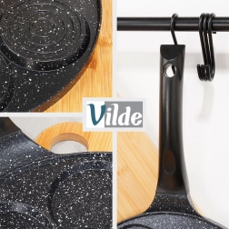 Trwała warstwa granitowa zapobiega przypalaniu, ułatwia przewracanie i pozwala gotować z minimalną ilością oleju.