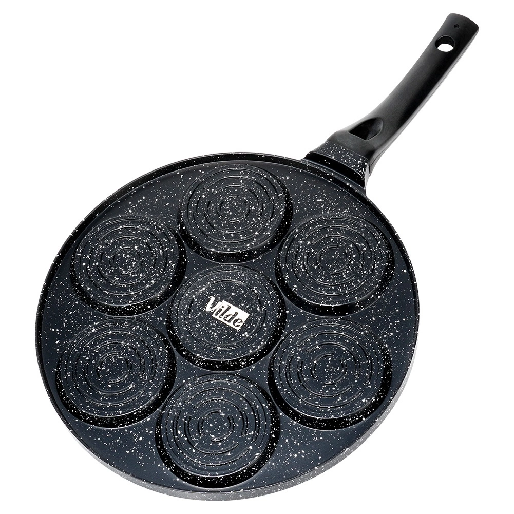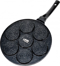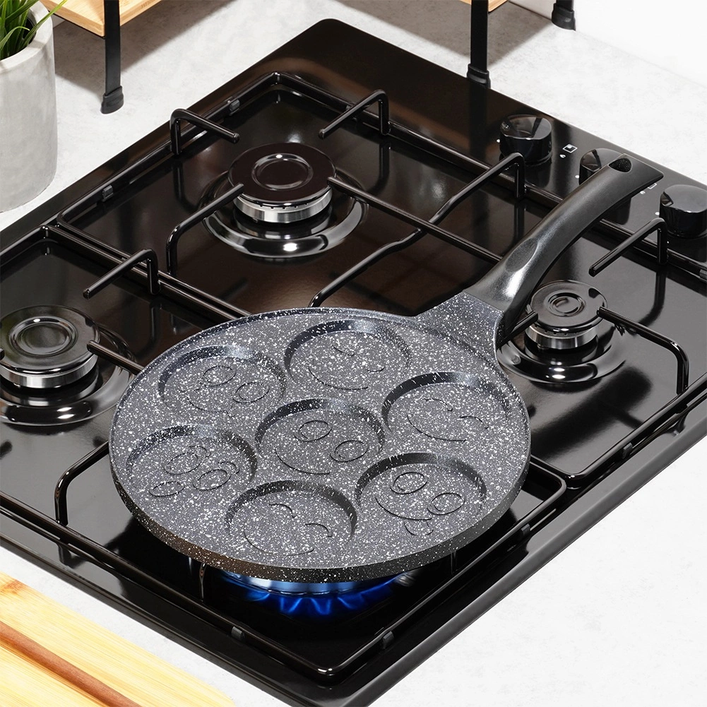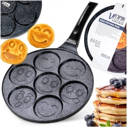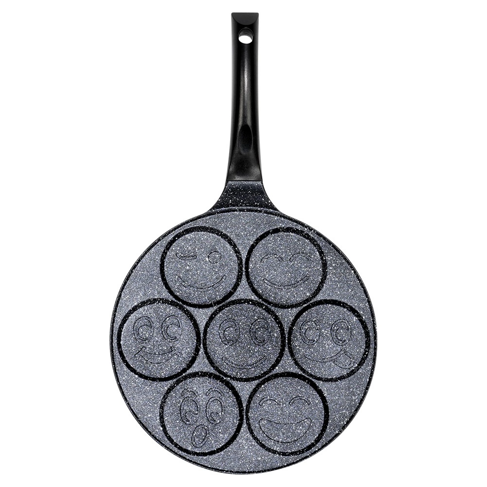 Stwórz idealne śniadanie dla całej rodziny: 7 okrągłych otworów z wesołymi motywami „smiley” wyczaruje równe porcje racuchów, mini naleśników lub jaj sadzonych. Nieprzywierająca warstwa granitowa zapewnia łatwe przewracanie i serwowanie oraz minimalizuje zużycie oleju.