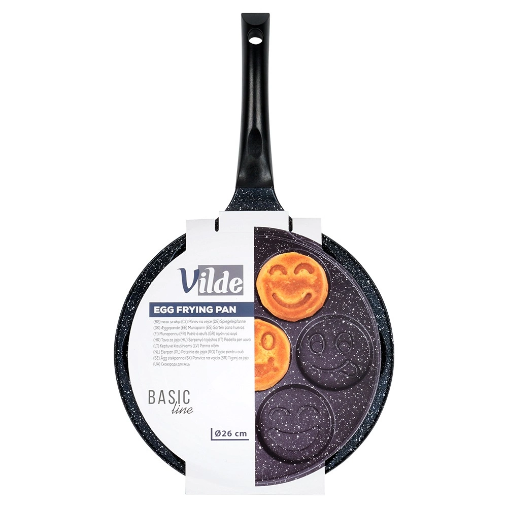 Zabawne mini placuszki i idealnie okrągłe jajka łatwo i szybko – ta granitowa patelnia BASIC LINE o średnicy 26 cm oferuje 7 oddzielnych foremek (ok. 8 cm) z uśmiechniętymi reliefami. Dzięki nieprzywierającej powłoce granitowej gotujesz z minimum tłuszczu, równomiernie się nagrzewa i ma wygodny uchwyt z oczkiem do zawieszenia. Odpowiednia do kuchenek gazowych, elektrycznych i ceramicznych oraz można myć w zmywarce.