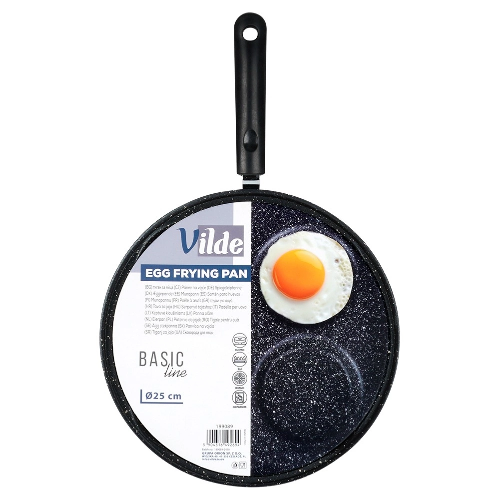Praktyczna patelnia z czterema formami o średnicy 9 cm do perfekcyjnie okrągłych jajek i placuszków. Dzięki nieprzywierającej granitowej powłoce przygotujesz zdrowe potrawy z minimalną ilością tłuszczu. Patelnia z linii BASIC LINE zapewnia równomierną dystrybucję ciepła oraz wygodny uchwyt z oczkiem do zawieszenia. Odpowiednia do kuchenek gazowych, elektrycznych i ceramicznych, łatwa w utrzymaniu i można myć w zmywarce.