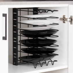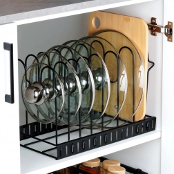 Przechowuj pokrywki, talerze i deski oddzielnie i przejrzyście. Organizer oszczędza miejsce i przyspiesza dostęp do często używanych naczyń.