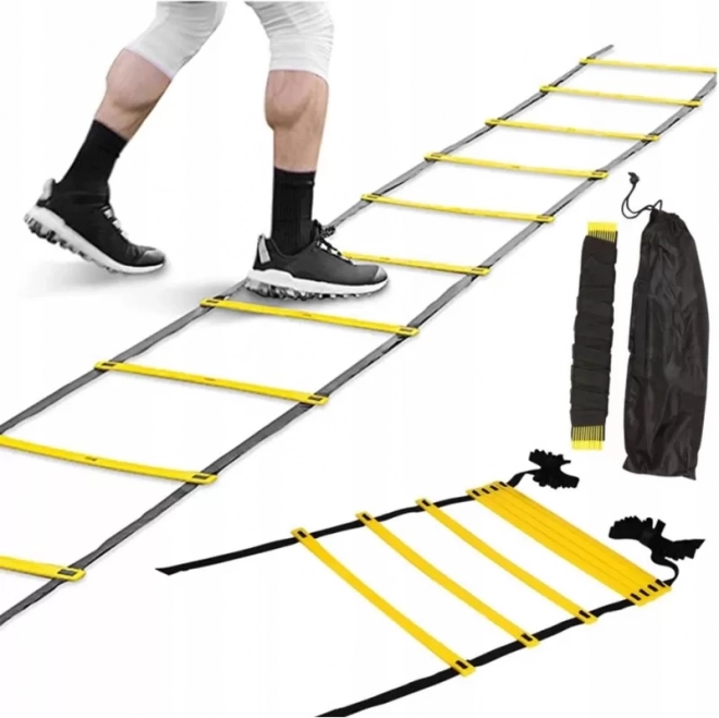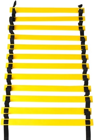 Wytrzymałe wykonanie z poliestru i PP znosi intensywne użytkowanie, a szerokość 50 cm i 12 szczebli zapewniają optymalną przestrzeń do różnych ćwiczeń – biegów, skoków, skipów i pracy ramion.