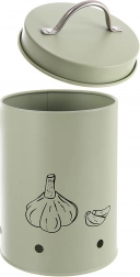 Dzięki kompaktowym wymiarom pojemnik z łatwością zmieści się na blacie i w spiżarni. Pastelowa zieleń ze srebrnym uchwytem świetnie pasuje zarówno do nowoczesnych, jak i rustykalnych kuchni. Grafika czosnku ułatwia szybkie rozróżnienie zawartości wśród innych pojemników.