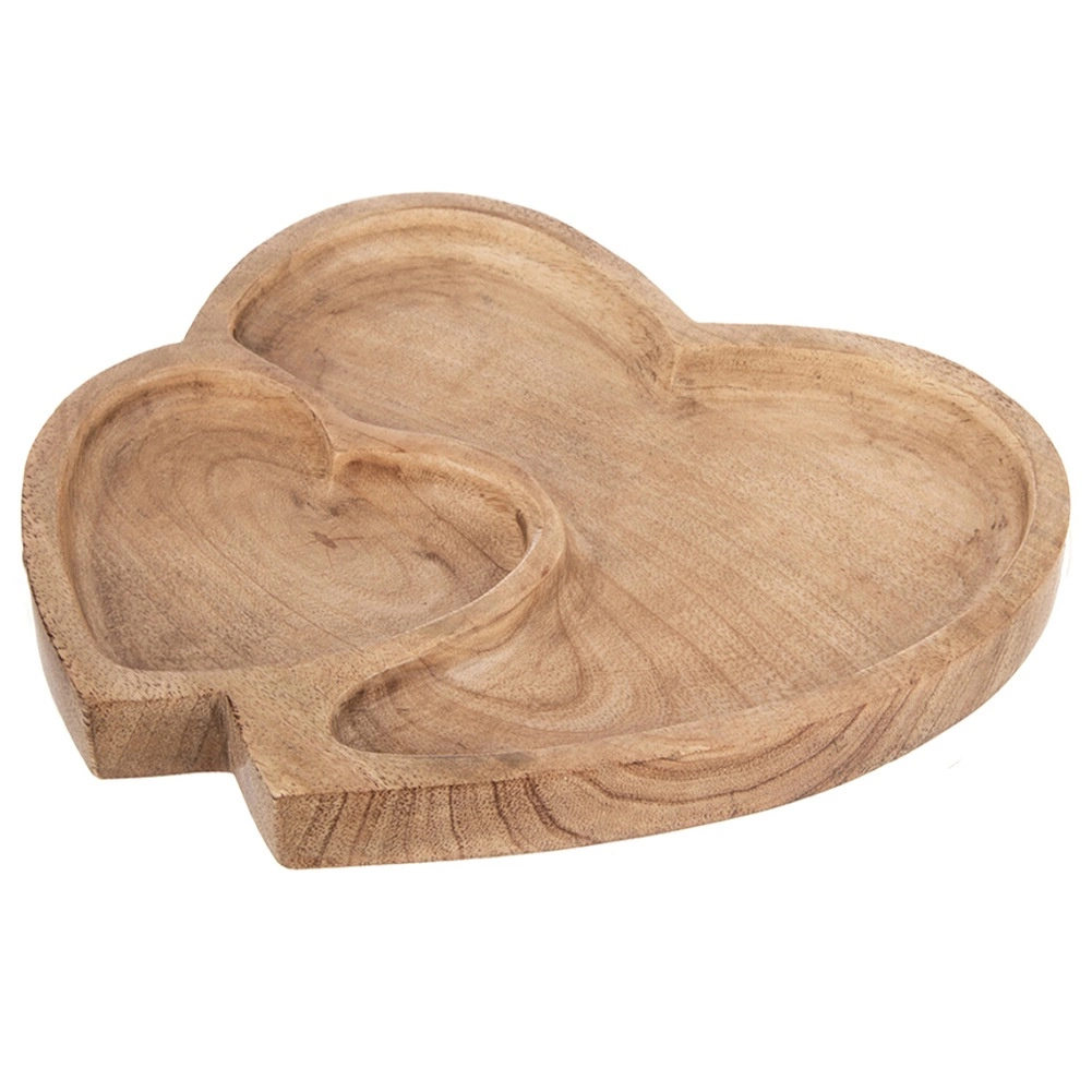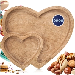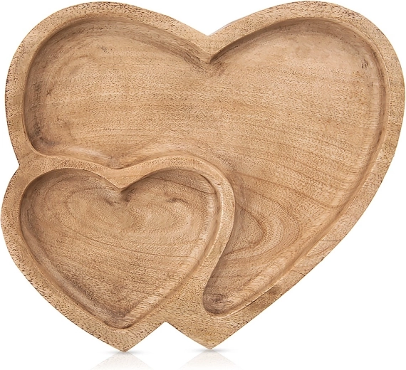 Ta taca do serwowania z wytrzymałego drewna mango wyróżnia się romantycznym kształtem podwójnego serca i praktycznym podziałem na dwie strefy. Nadaje się do codziennego serwowania i na uroczyste okazje – od orzechów i suszonych owoców po słodycze i ciasteczka. Dzięki naturalnemu rysunkowi drewna pasuje do wnętrz rustykalnych, boho i skandynawskich.