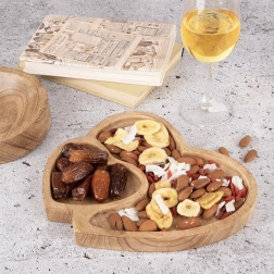 Praktyczny podział pozwala podawać jednocześnie dwa rodzaje smakołyków – na przykład orzechy i suszone owoce, słodkie i słone lub różne przekąski.