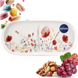 Elegancki porcelanowy talerz do serwowania z motywem łąkowych kwiatów jest idealny do podawania przystawek, deserów i przekąsek. Ma owalny kształt 25 × 12 × 1,5 cm, gładką glazurę i podwyższone krawędzie. Wykonany z wysokiej jakości porcelany, jest odpowiedni do zmywarki i kuchenki mikrofalowej, a do tego świetnie pasuje zarówno do nowoczesnych, jak i klasycznych wnętrz.