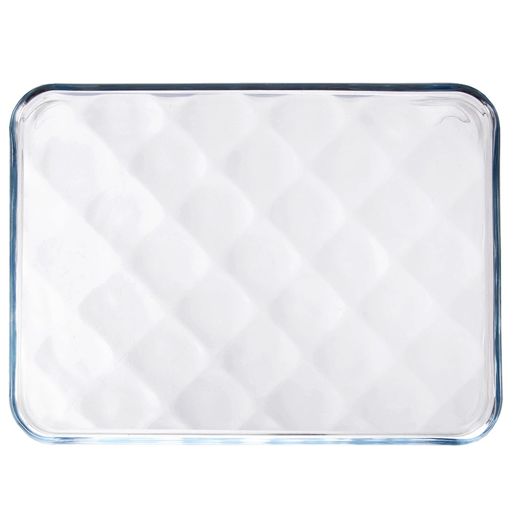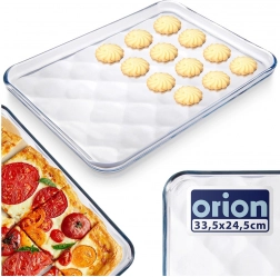 Uniwersalna szklana misa z borokrzemowego szkła o wymiarach 33,5 × 24,5 × 2 cm do pieczenia, podgrzewania i serwowania. Dzięki delikatnemu reliefowi dna jest elegancka i praktyczna – zapewnia lepszą cyrkulację powietrza i ogranicza przypalanie. Odpowiednia do piekarnika, mikrofalówki, zmywarki oraz zamrażarki (−40 °C do +300 °C).