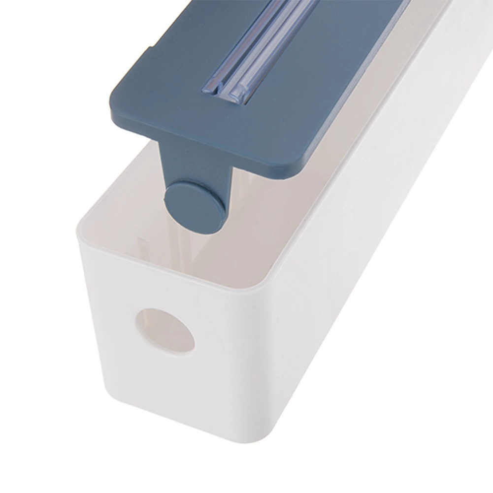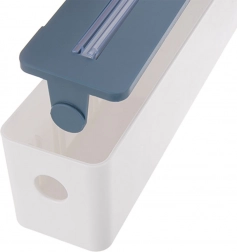 Boczne zatrzaski umożliwiają szybkie otwarcie i włożenie nowej rolki. Wewnętrzne ograniczniki zapobiegają przesuwaniu, aby folia była zawsze gotowa do cięcia.