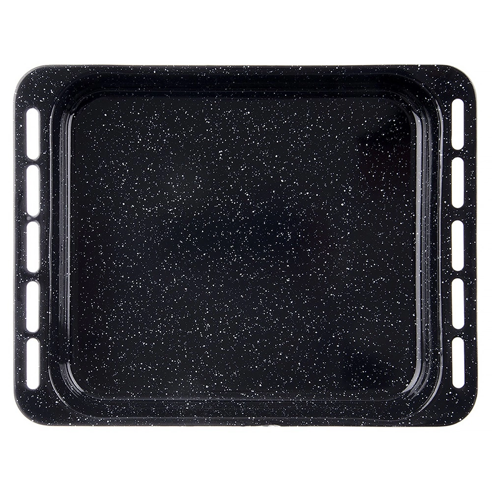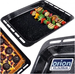 Zewnętrzne wymiary blachy to 45,5 × 36 × 5 cm, wewnętrzne 38 × 34 × 5 cm – zyskasz więc dość miejsca na rodzinne porcje i większe placki. Gładka emalia ułatwia pielęgnację i nadaje się do zmywarki, a jednocześnie jest odporna na zarysowania i wysokie temperatury w piekarnikach gazowych i elektrycznych.