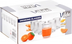 Odkryj praktyczny i ponadczasowy zestaw szklanek Vilde, który ozdobi każdy stół. Dzięki klasycznemu cylindrycznemu kształtowi i pionowemu ryflowaniu szklanki wygodnie leżą w dłoni, a jednocześnie świetnie prezentują się zarówno w nowoczesnych, jak i tradycyjnych wnętrzach. Od porannego soku po wieczorny koktajl – jedna szklanka na każdą okazję.
