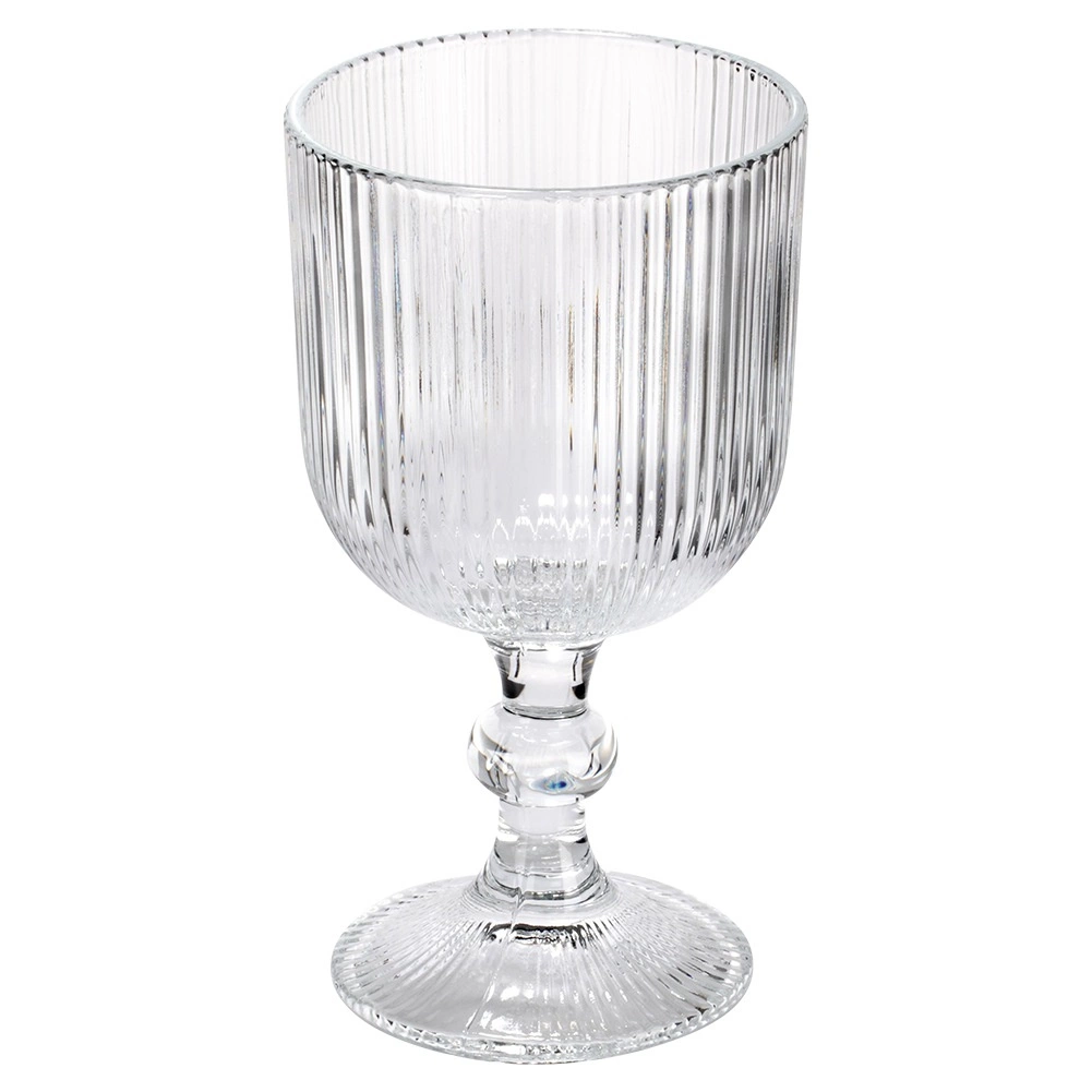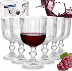 Elegancki zestaw 6 szklanych kieliszków o pojemności 340 ml jest idealny do serwowania białego i czerwonego wina, wody, lemoniad czy deserów. Kieliszki z wysokiej jakości, grubego szkła mają wyraziste ryflowane wykończenie, stabilną szeroką stopę oraz wygodnie wyprofilowaną nóżkę dla pewnego chwytu. Dzięki ponadczasowemu designowi sprawdzą się na co dzień i na specjalne okazje, a ponadto można je myć w zmywarce.