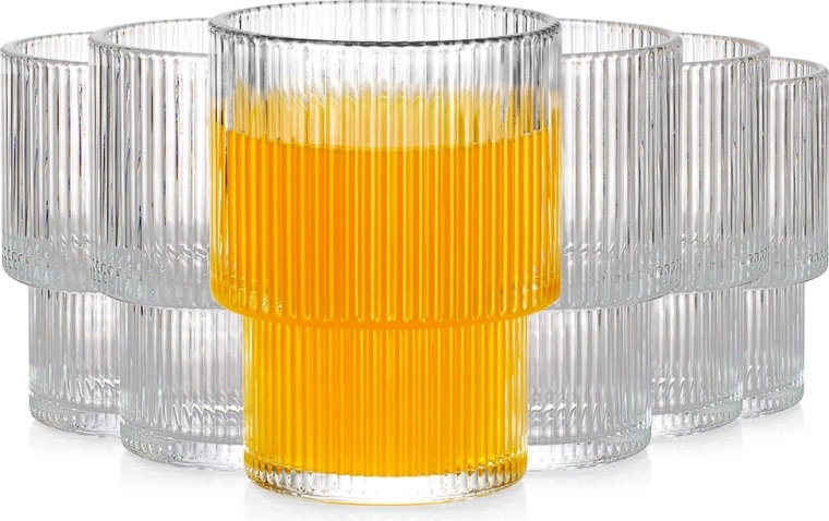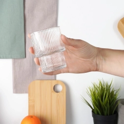 Pionowa faktura szkła zapewnia wygodne trzymanie i nadaje szklankom nowoczesny wygląd, który wyróżnia się przy każdym serwowaniu.