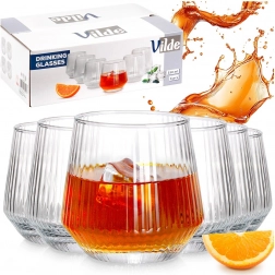 Odkryj uniwersalne szklanki, które podkreślą każdy napój. Dzięki pionowemu żebrowaniu prezentują się stylowo, lepiej leżą w dłoni i mają stabilną podstawę. Pojemność 350 ml jest idealna do wody, soków, mrożonych herbat, domowych lemoniad, ulubionych koktajli i whisky.