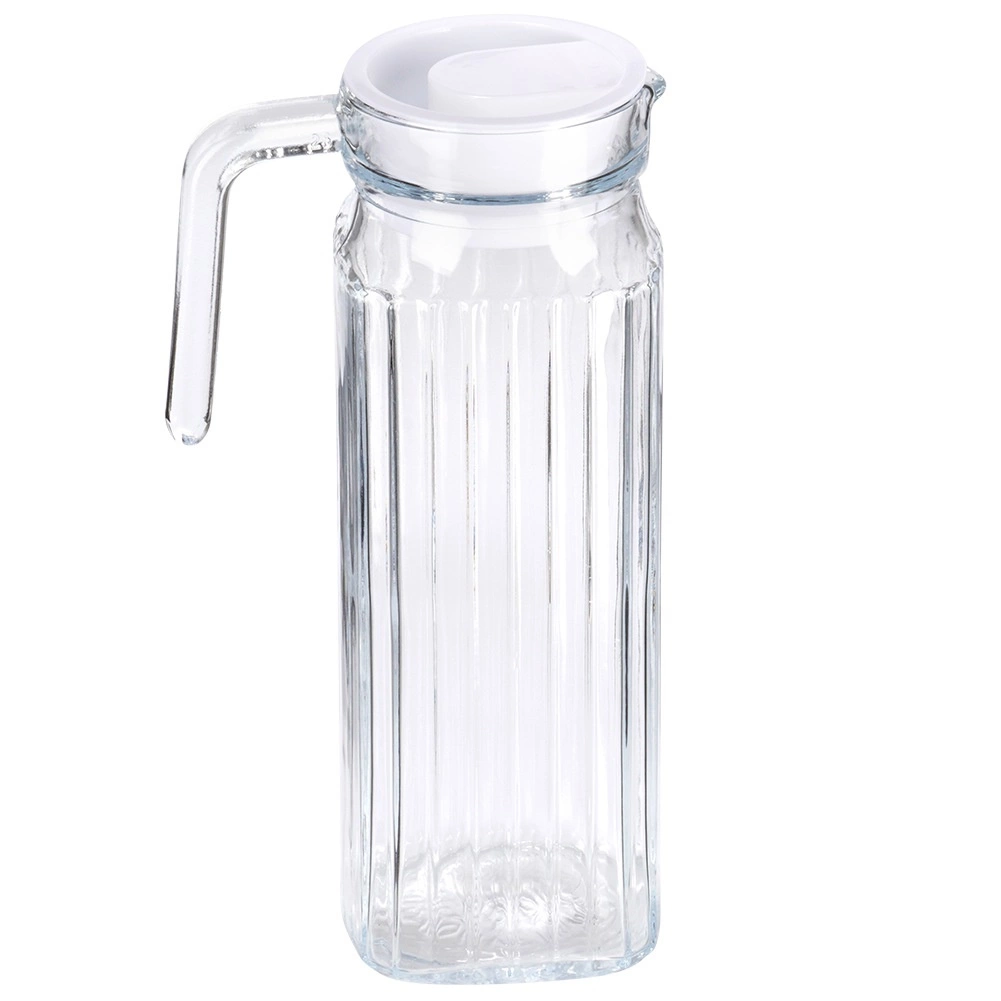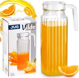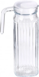 Elegancki szklany dzbanek o pojemności 1 l z wąską, kwadratową podstawą idealnie mieści się w drzwiach lodówki. Ma wygodne ucho, dzióbek do precyzyjnego nalewania oraz białą pokrywkę, która chroni napój. Dzięki ryflowanemu szkłu, bezpiecznej pokrywce i łatwej pielęgnacji w zmywarce jest idealny do wody, soków i mrożonej herbaty.